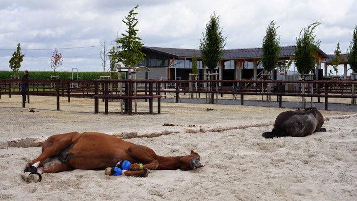 Ein weiteres Highlight ist die flächendeckende Befestigung der Paddockfläche mit Schauer Bodenmatten, die für einen rutschfesten und trittsicheren Untergrund sorgen. Die Reinigung erfolgt effizient mit dem Farm-Servant, der Äppel automatisch aufsammelt.