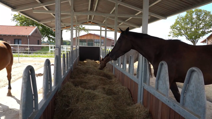 Die zentrale Wegführung erleichtert zudem das schnelle und effiziente Befüllen der HeuTimer. Gemeinsam mit den Kraftfutterstationen und den Selektionsbereichen sorgen sie für eine kontrollierte, bedarfsgerechte und individuelle Fütterung jedes einzelnen Pferdes.
